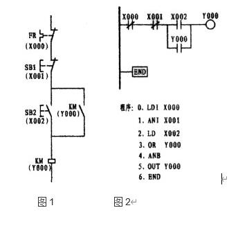 上圖的圖1為電原理圖,圖2則為按與原理圖一一對應(yīng)的原則編繪的梯形圖,其特點(diǎn)是易于理解,但在我的印象中沒有幾張是可以這樣繪制的。如果采用這樣的方法繪制的話,將有可能走入不歸路。盡管二個(gè)圖都可運(yùn)行,但如果將圖2加以改變而成為圖3 ,可以看出圖3在程序上少了一個(gè)步序ANB。簡潔明了是編程的要素。故而在編繪梯形圖時(shí)應(yīng)盡量地將多觸頭并聯(lián)觸頭放置在梯形圖的母線一側(cè)可減少ANB指令。圖2中的X000、圖3中的X002均為外接熱繼電器所控制的常閉接點(diǎn),而熱繼電器則用常開接點(diǎn)(或也可將外部的熱繼電器的常閉觸頭與接觸器線圈相串聯(lián))。只有在畫出梯形圖后,再根據(jù)梯形圖編出程序。