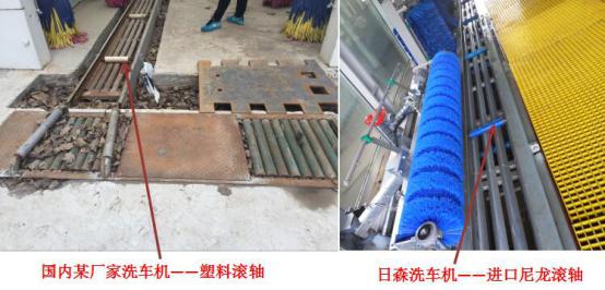 隧道式洗車機輸送系統是能實現連續洗車的重要機構,看似簡單的滾輪卻起著舉足輕重的作用,普通滾輪選用塑料材質,耐磨性差,而日森選用進口尼龍輪,帶動性好,耐磨性更好。