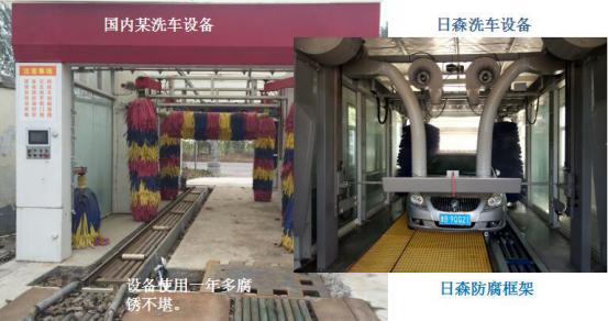 ????整體框架的防腐。洗車設備長時間接觸有水環境,濕度高,如果整體機構沒有做好防腐處理,一到兩年時間設備便會銹跡斑斑,腐蝕不堪之狀。