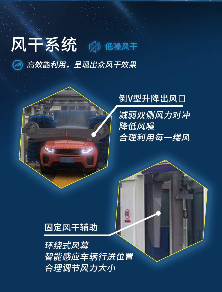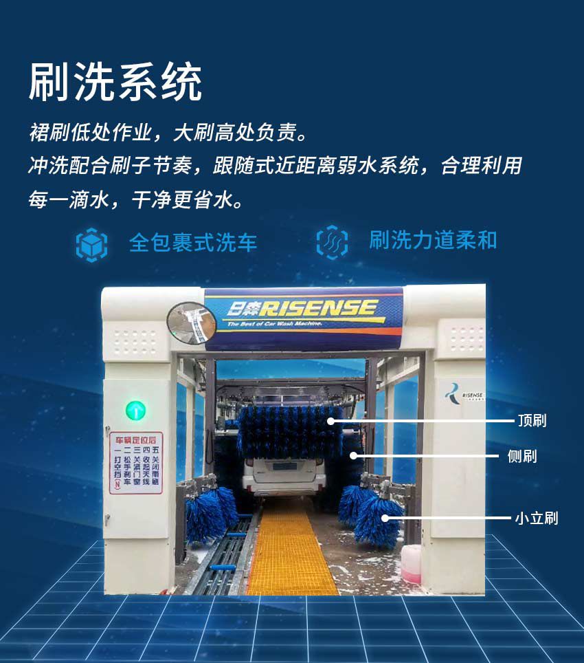 本款設(shè)備堅(jiān)固耐用,外觀兼顧國(guó)內(nèi)外客戶的喜愛,對(duì)場(chǎng)地適應(yīng)能力強(qiáng),各種性能出色,是國(guó)內(nèi)外裝機(jī)量較大的一種隧道式洗車設(shè)備。